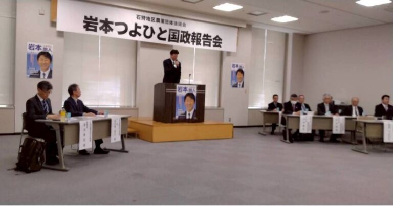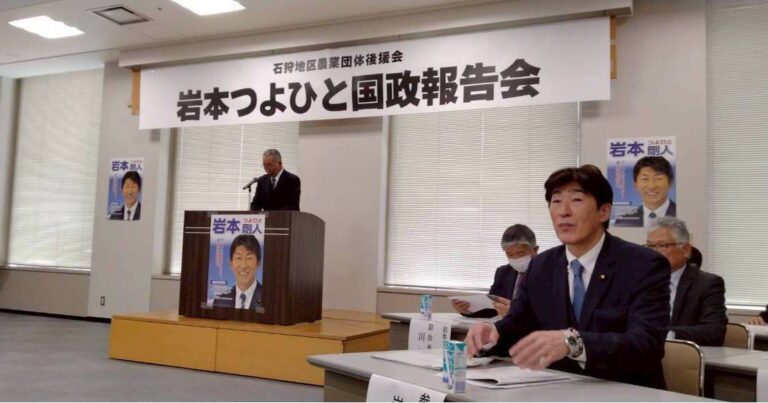 令和8年3月28日(土)石狩地区農業団体後援会主催の「岩本つよひと国政報告会」で、現在会期中の国会での審議内容など、国政の現状について報告させていただきました。