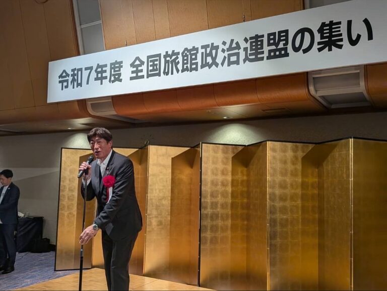 令和7年全国旅館政治連盟全国の集いに参加して挨拶をさせていただきました。