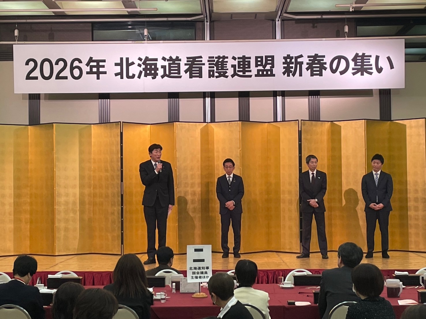 北海道看護連盟の新春の集いにお招きいただき、新春のご挨拶をさせていただきました。 2026年1月17日 令和8年1月17日(土) 北海道看護連盟の新春の集いにお招きいただき、新春のご挨拶をさせていただきました。また、看護、医療に精通されている参議院議員の友納りお先生もご挨拶をされていました。医療・看護の課題解決に向け力を合わせてがんばりましょう。