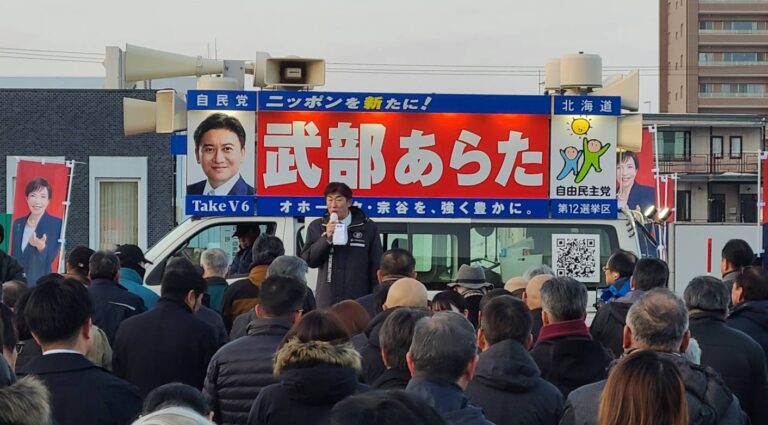 北海道第12選挙区自民党候補 武部あらたさんの「第一声」に駆け付け、応援演説をさせていただきました。 2026年1月27日 令和8年1月27日(火) 北見市を訪れ北海道第12選挙区自民党候補 武部あらたさんの「第一声」に駆け付け、応援演説をさせていただきました。多くの支援者の方々がお見えになり会場は熱気にあふれていました。皆さん共に頑張りましょう!
