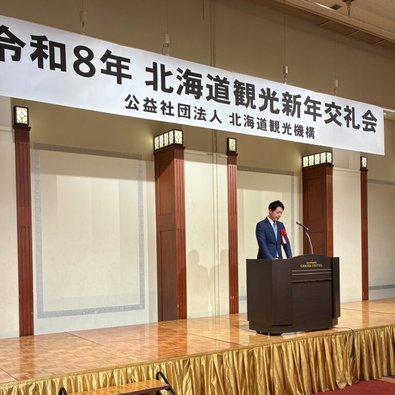 北海道観光機構の「令和8年北海道観光新年交礼会」にお招きいただきました。 2026年1月6日 令和8年1月6日(火) 北海道観光機構の「令和8年北海道観光新年交礼会」にお招きいただきました。オーバーツーリズムなど、解決しなければならない課題は多くありますが鈴木知事と力をあわせて北海道観光を推し進めて参ります。