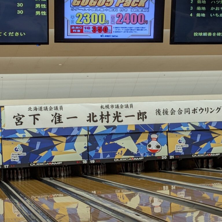 北海道議会議員 宮下准一さんと札幌市議会議員 北村光一郎さんの合同ボウリング大会が開催されました。 2026年2月11日 令和8年2月11日(水・祝) 北海道議会議員 宮下准一さんと札幌市議会議員 北村光一郎さんの合同ボウリング大会が開催されました。残念ながら所用が重なり開会式には間に合いませんでしたが、プレイ中に地元清田地区の皆さんとお会いすることが出来ました。