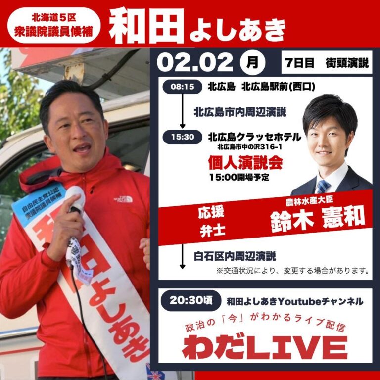 北海道第五選挙区 自民党候補 和田よしあきさんの個人演説会が開催されました。