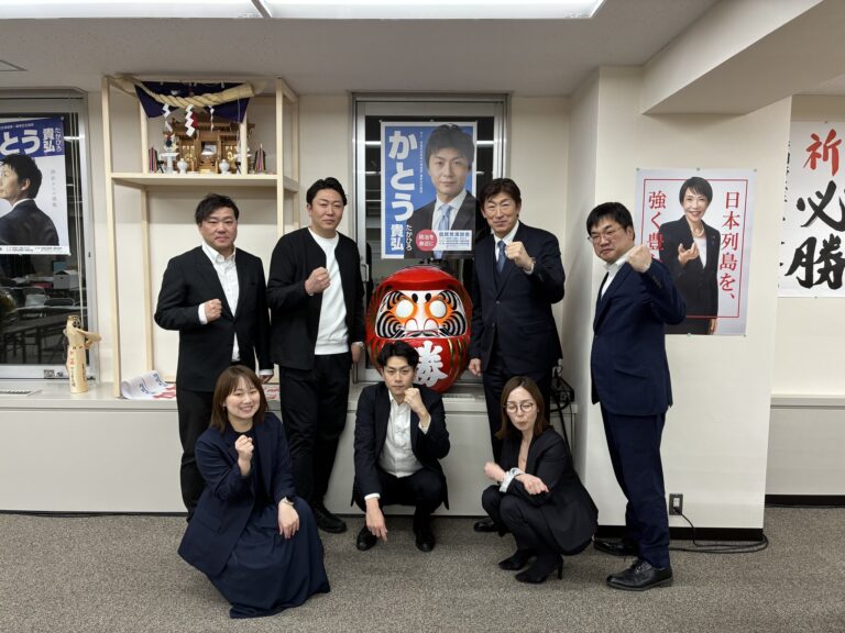 第51回衆議院議員総選挙に北海道第一選挙区より出馬を予定されいる かとう貴弘さんの選対事務所開きに駆け付けました。 2026年1月24日 令和8年1月24日(土) 第51回衆議院議員総選挙に北海道第一選挙区より出馬を予定されいる かとう貴弘さんの選対事務所開きに駆け付けました。厳寒の中の戦いとなりますが、私もしっかり応援します。