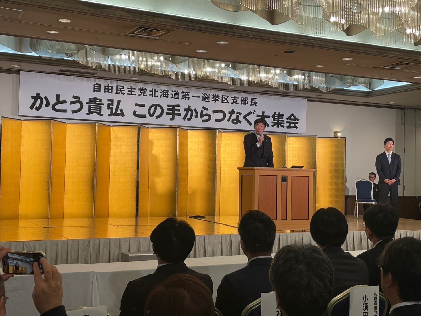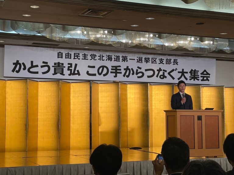 自民党北海道第一選挙区支部長のかとう貴弘さんの「この手からつなぐ大集会」に駆け付け、応援のご挨拶をさせていただきました。 2026年1月26日 令和8年1月26日(月) 今回の衆議院選挙に出馬される自民党北海道第一選挙区支部長のかとう貴弘さんの「この手からつなぐ大集会」に駆け付け、応援のご挨拶をさせていただきました。激戦区での戦いとなりますが、私もしっかりと応援させていただきます。共に頑張りましょう!