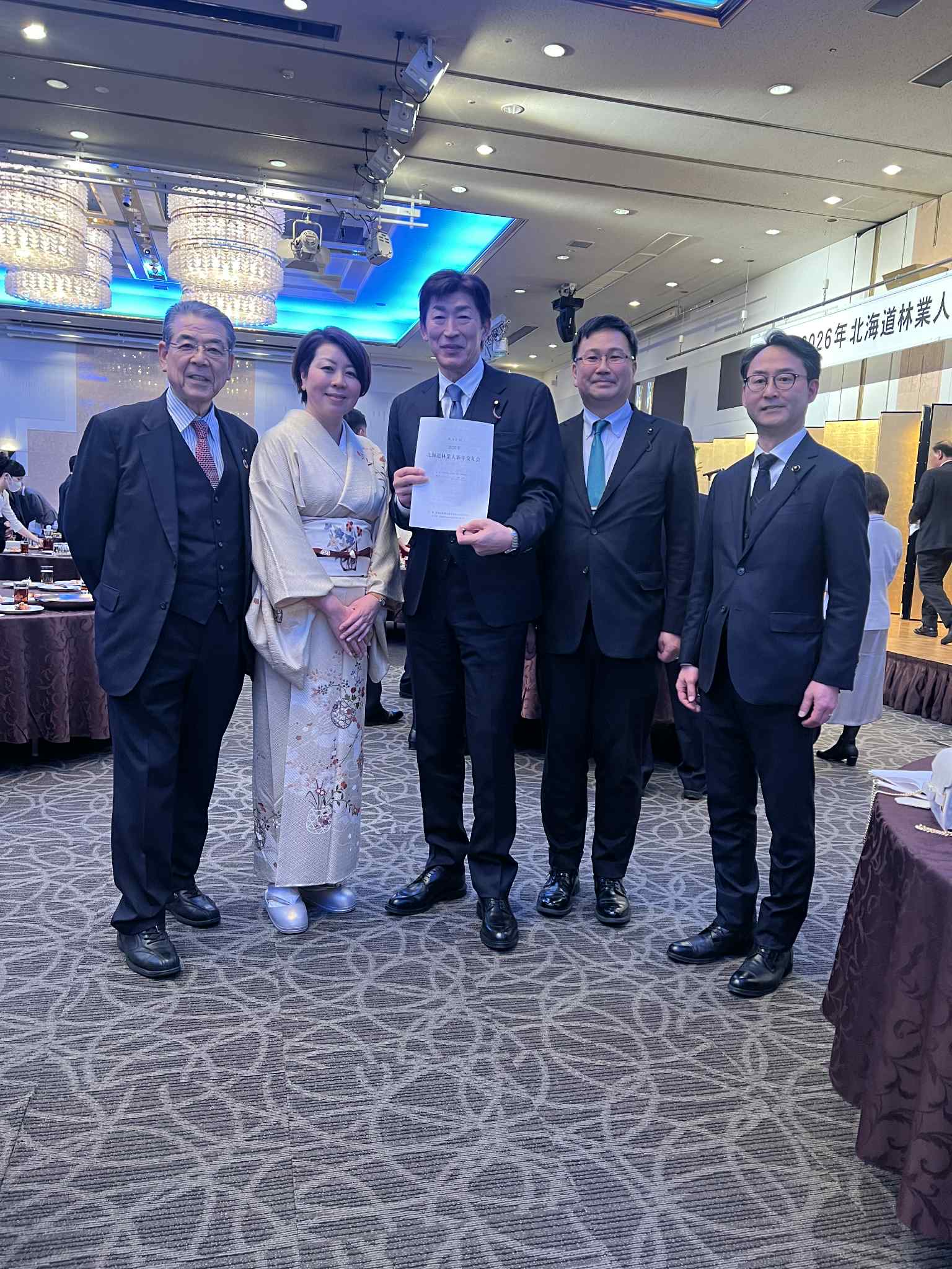 令和8年1月14日(水)早朝より札幌を出発して、急逝された前釧路市長の蛯名大也さんの告別式に参列後、札幌へとんぼ返りし私学振興に関する懇話会に出席予定でしたが、帰札途中に荒天にみまわれ高速道路も一部通行止めとなり出席が叶いませんでした。ご参会の皆様には大変申し訳ございませんでした。心よりお詫び申し上げます。帰札後は北海道林業人新年交礼会、恵庭市建設業協会新年交礼会、札幌青年会議所新年交礼会に駆け付け、新春のご挨拶をさせていただきました。今年もよろしくお願い致します。