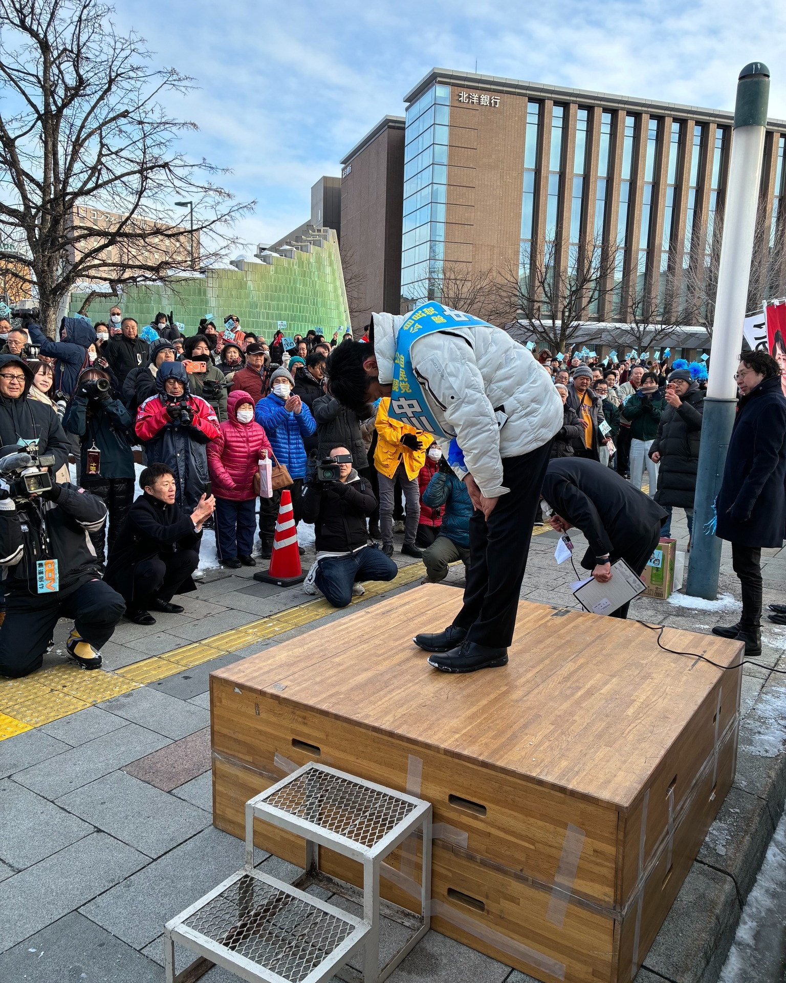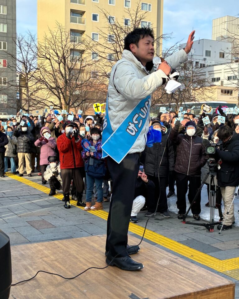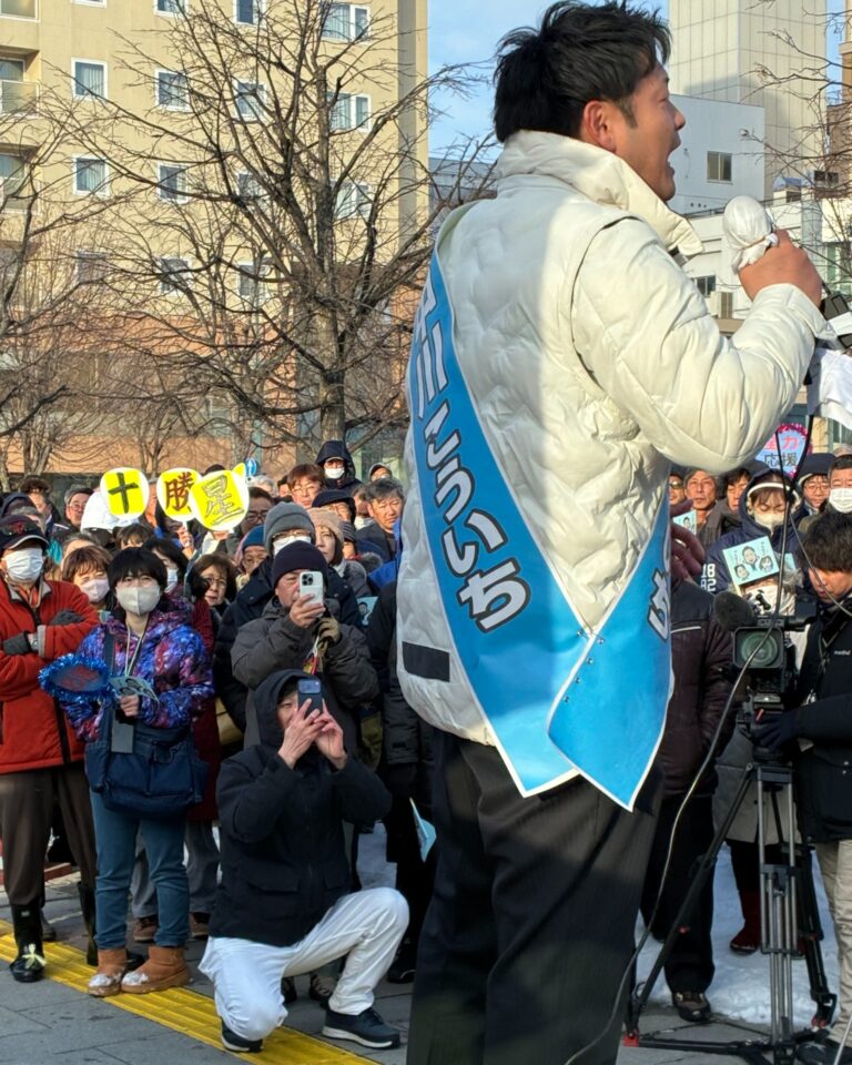令和8年2月7日(土) 衆議院選挙北海道第十一選挙区 自民党公認候補 中川」こういちさんが帯広駅にて最後の演説を行いました。大変多くの皆さんが応援に駆け付け、心強いご声援をいただきました。あと数時間で厳しい選挙戦も終了しますが、最後まで力を尽くし頑張りましょう!十勝の皆さんどうか力をお貸しください。中川こういちさんと自民党をよろしくお願いいたします。