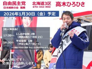 北海道第4選挙区 自民党候補 中村ひろゆきさんの個人演説会が岩内町で開催されました。 2026年1月31日 北海道第4選挙区 自民党候補 中村ひろゆきさんの個人演説会が岩内町で開催されました。 投稿を読む »